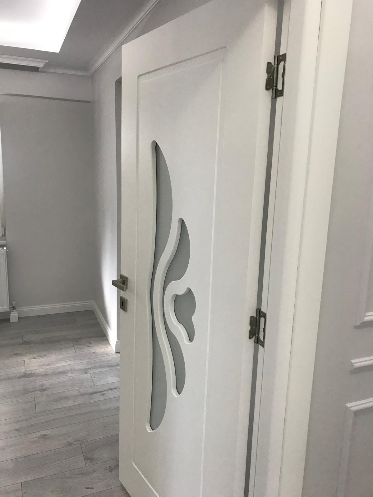 Malzeme ve Renk: Kapı, iç mekanlarda hijyenik, dayanıklı ve estetik bir görünüm sağlayan tam lake beyaz boya ile kaplanmıştır. Lake yüzey, ışığı yansıtarak kapının parlak ve pürüzsüz görünmesini sağlar.